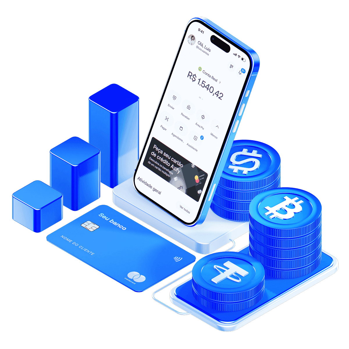 Contas, Pix, ativos virtuais, cartões, investimentos e mais, ative o que quiser, quando quiser.